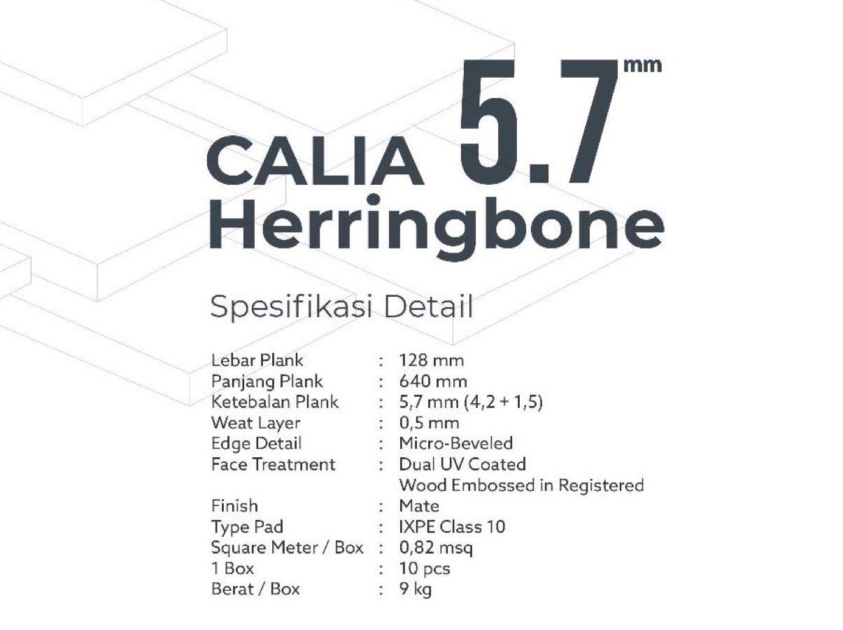 SPC Flooring Herringbone Series memiliki cara pemasangan yang berbeda dengan SPC Flooring biasa, karena dipasang dengan menggunakan motif Herringbone yang bisa memberikan kesan ruangan yang lebih luas dan lebih elegan.